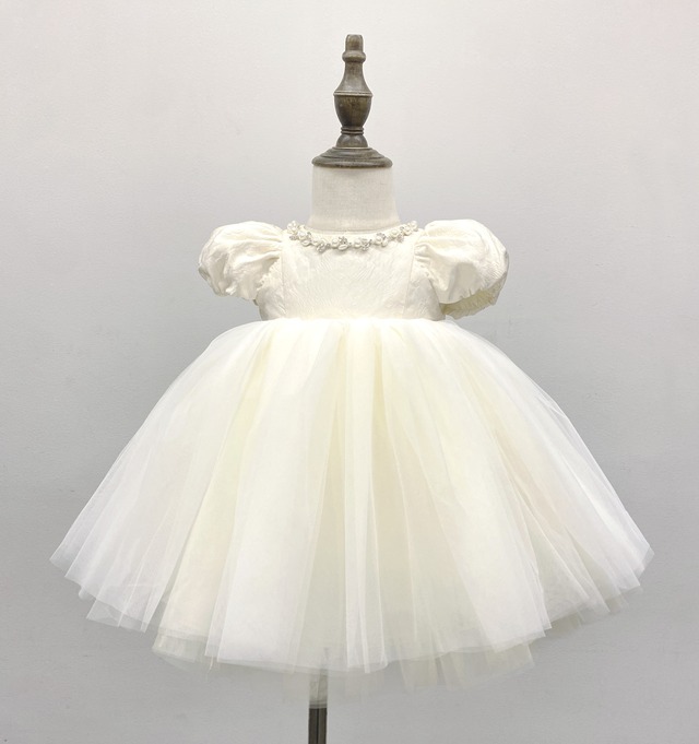首元や袖端のビーズ刺繍が上品で、ボリュームのあるスカートが可愛らしいベビードレスです。 大切なお子様の特別な日や記念撮影にぴったりの一着です。 ※ハンドウォッシュをおすすめします。サイズに注意してご注文ください。 サイズ:80cm / 90cm / 100cm ◇本商品は受注商品となります。 ご注文いただいてから45日程度でのお届けとなります。 ◇10点以上のご購入でOEMも承ります ◇ご利用になる機種や照明により実物と写真の色が異なる場合がございます。 *************************** ベビードレス/キッズドレス/プリンセス/プリンセスドレス/セレモニードレス/#ウェディング/結婚式/ウェディング/ブライダル/#ブライダル/ブライダルフォト/フォーマル/フラワーガール/リトルプリンセス/発表会/ピアノ発表会/子供ドレス/ワンピース/赤ちゃんドレス/お誕生日会/80/90/100