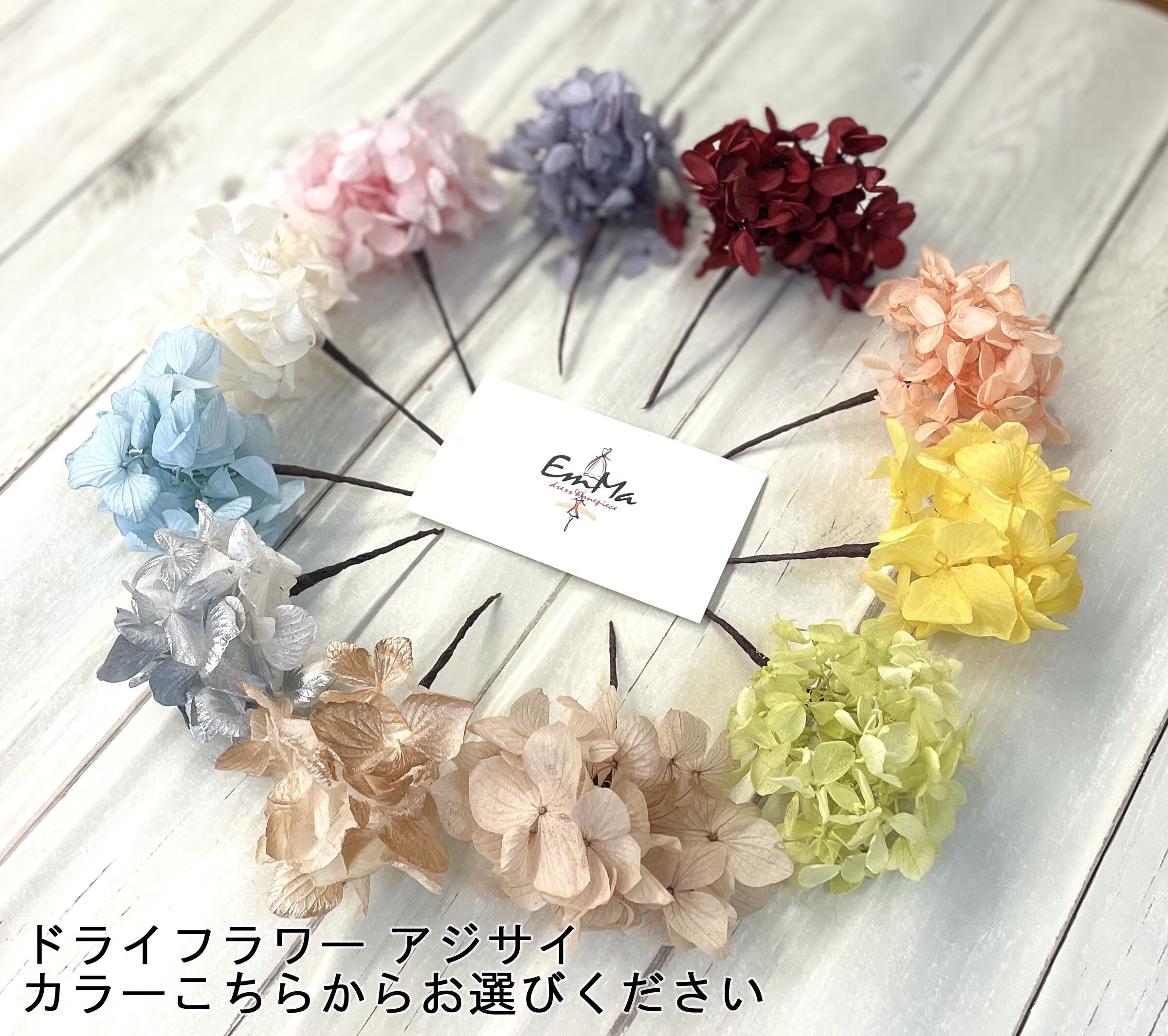 ドライフラワーアジサイの色を11色からお選びいただけます。
